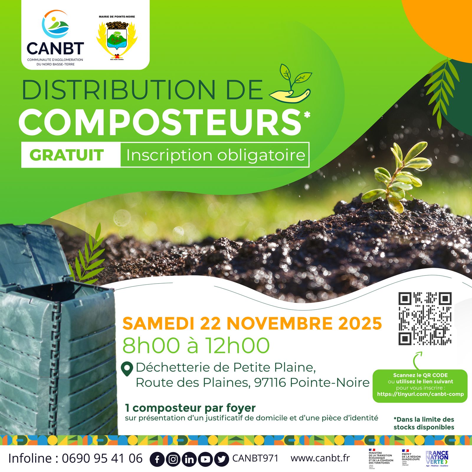 La Communauté d’Agglomération du Nord Basse-Terre (CANBT) invite les habitants du territoire à bénéficier d’une opération de distribution gratuite de composteurs.