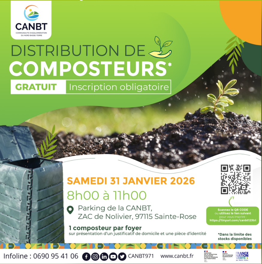 La Communauté d’Agglomération du Nord Basse-Terre (CANBT) invite les habitants du territoire à bénéficier d’une opération de distribution gratuite de composteurs.