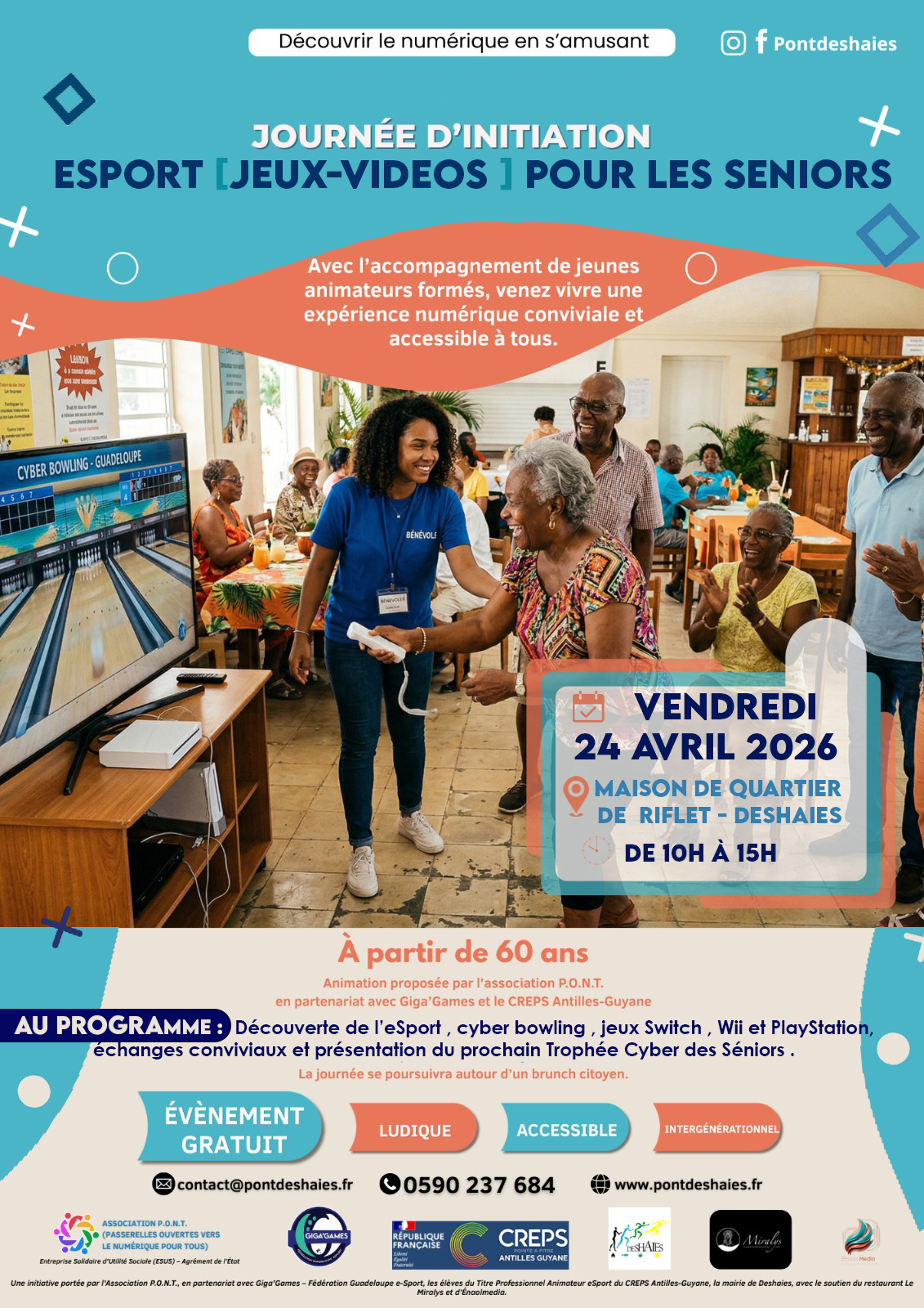 L’association P.O.N.T. de Ville De Deshaies Déhé vous donne rendez-vous pour une journée d’initiation e-sport / jeux vidéo spécialement dédiée aux seniors.